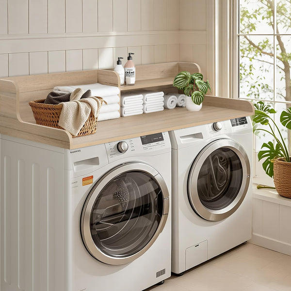 High-quality and easy to maintain: Crafted from high-pressure decorative laminate and P2-grade CARB board, our washer-dryer countertop boasts heat resistance, waterproof properties, and simple maintenance, rendering it a dependable selection for your laundry area. With a weight capacity of up to 200 lbs, it can handle heavy loads and withstand daily use.